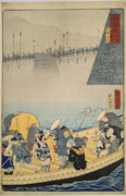 暁斎 東海道名所之内(御上洛東海道) 岡崎 やはぎ川舟わたし